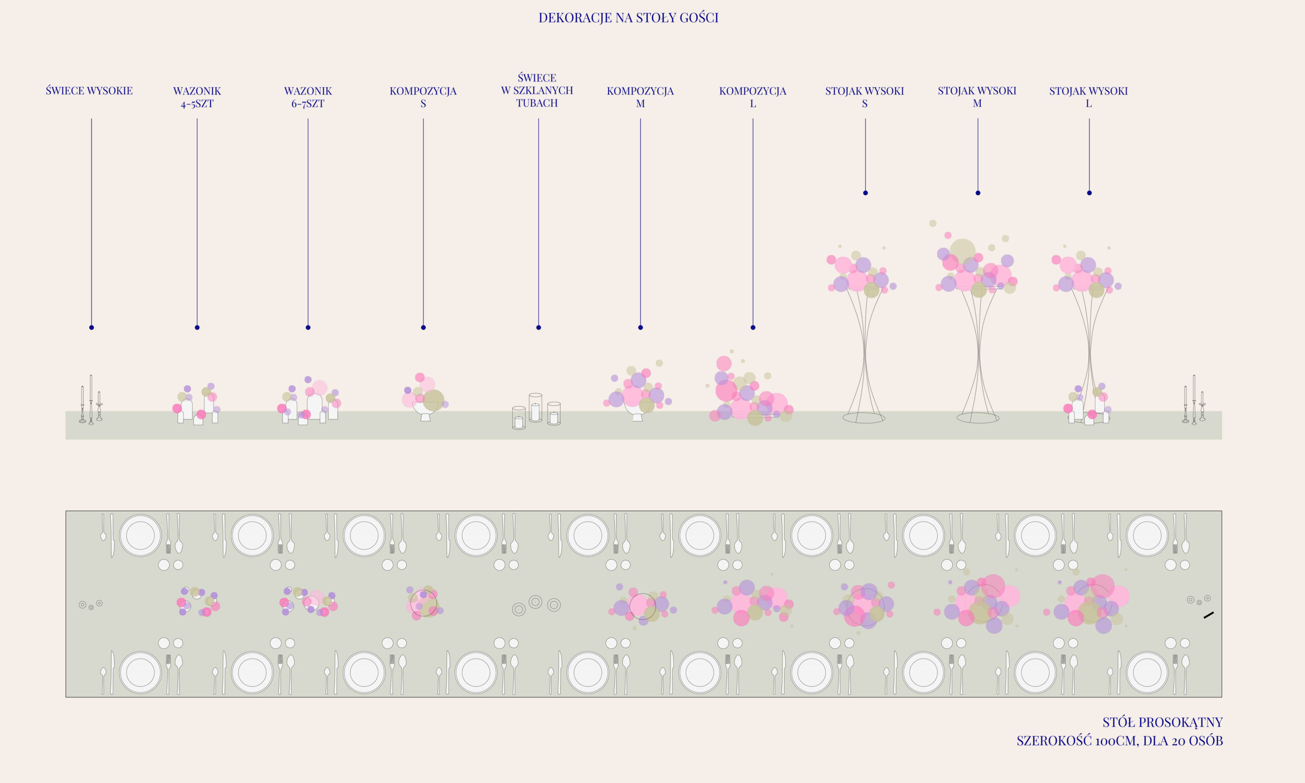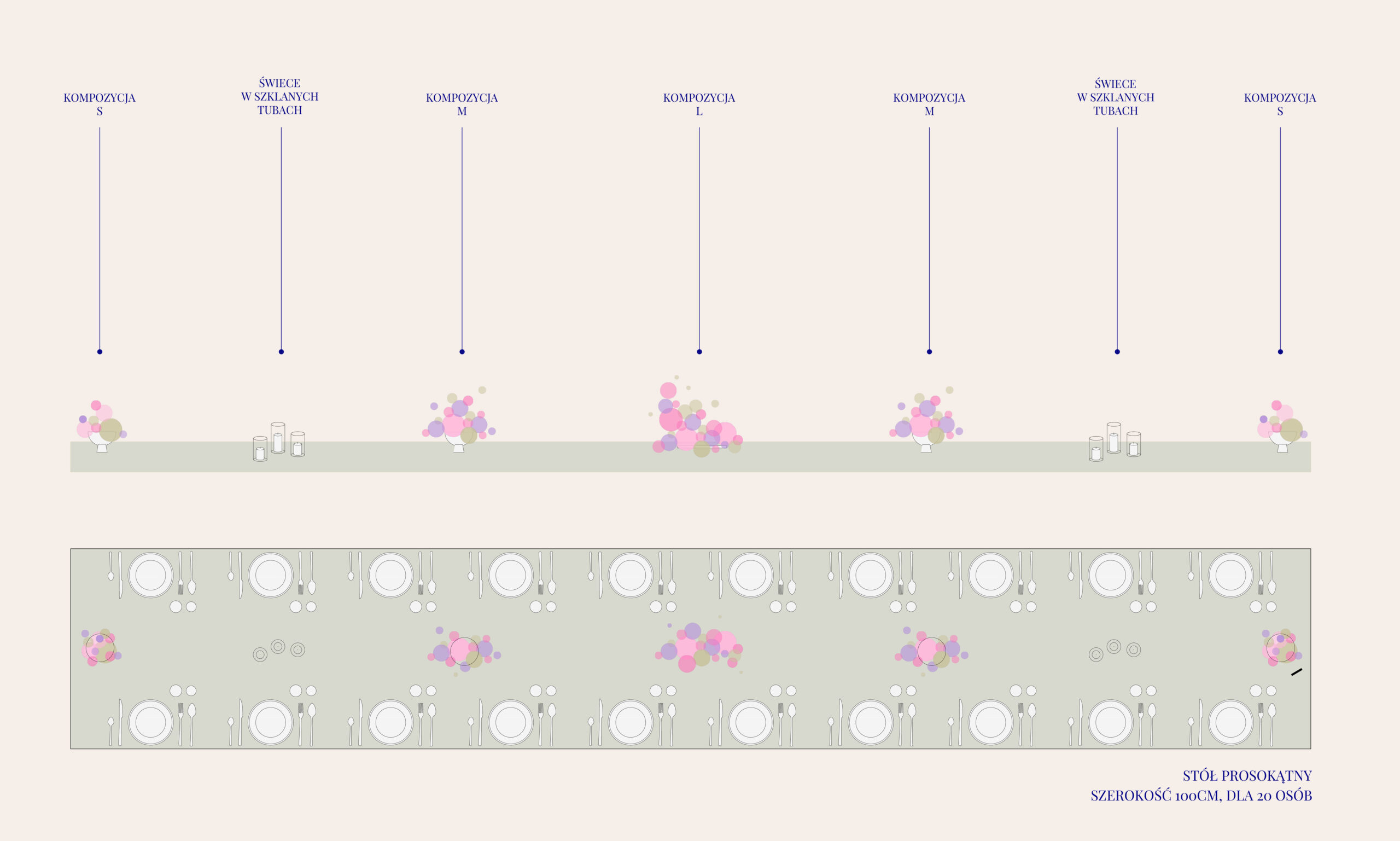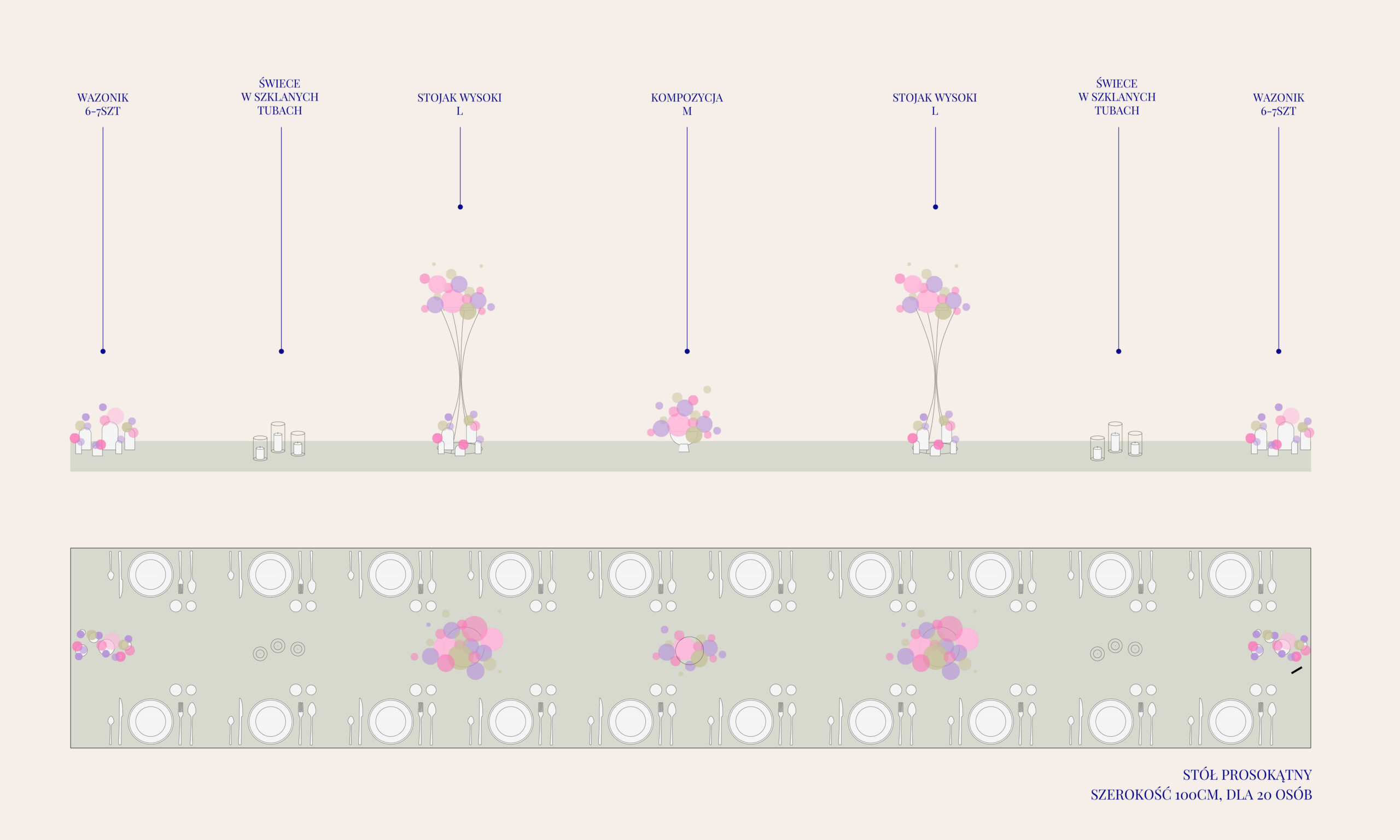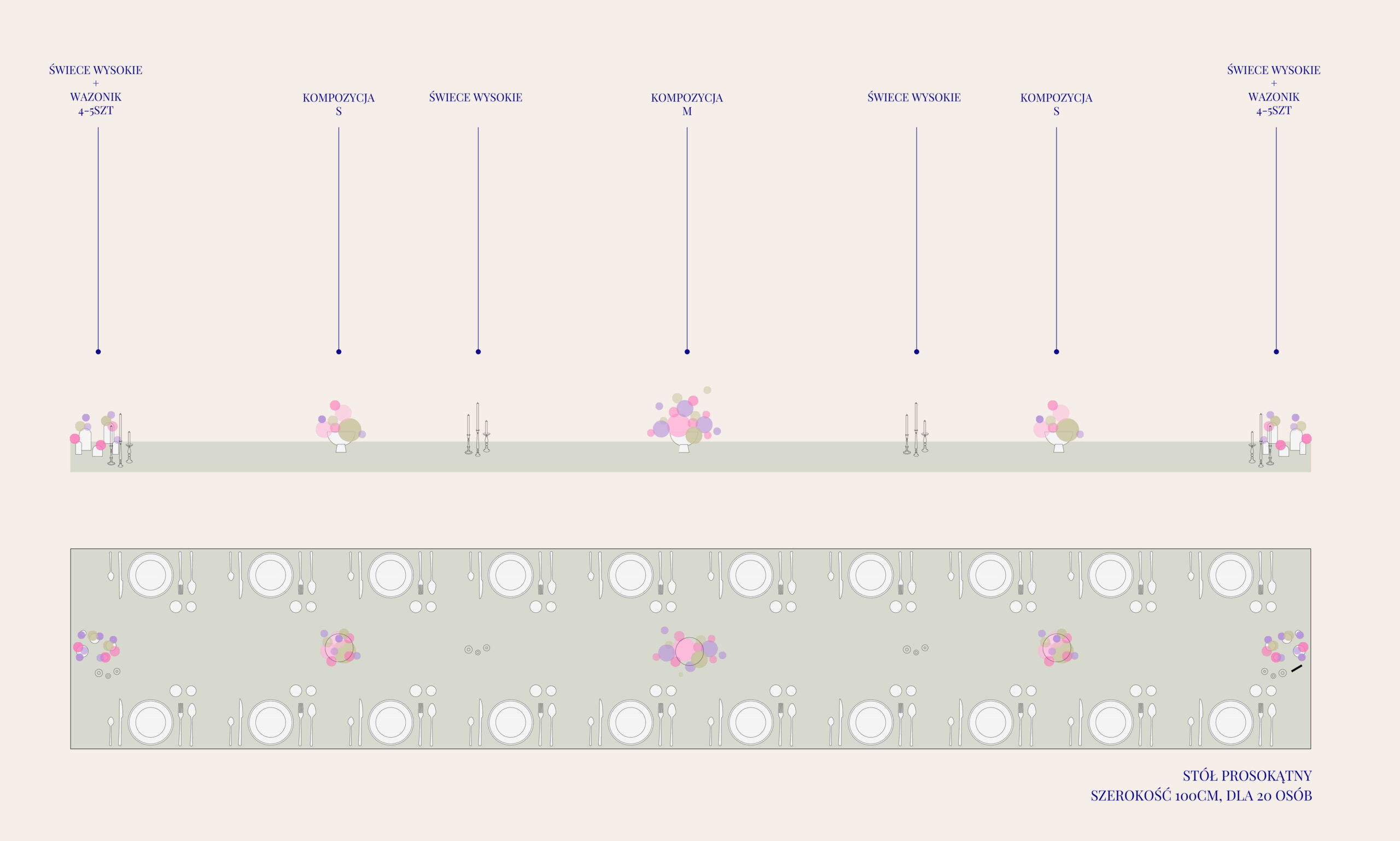 Przykładowe aranżacje stołów prostokątnych