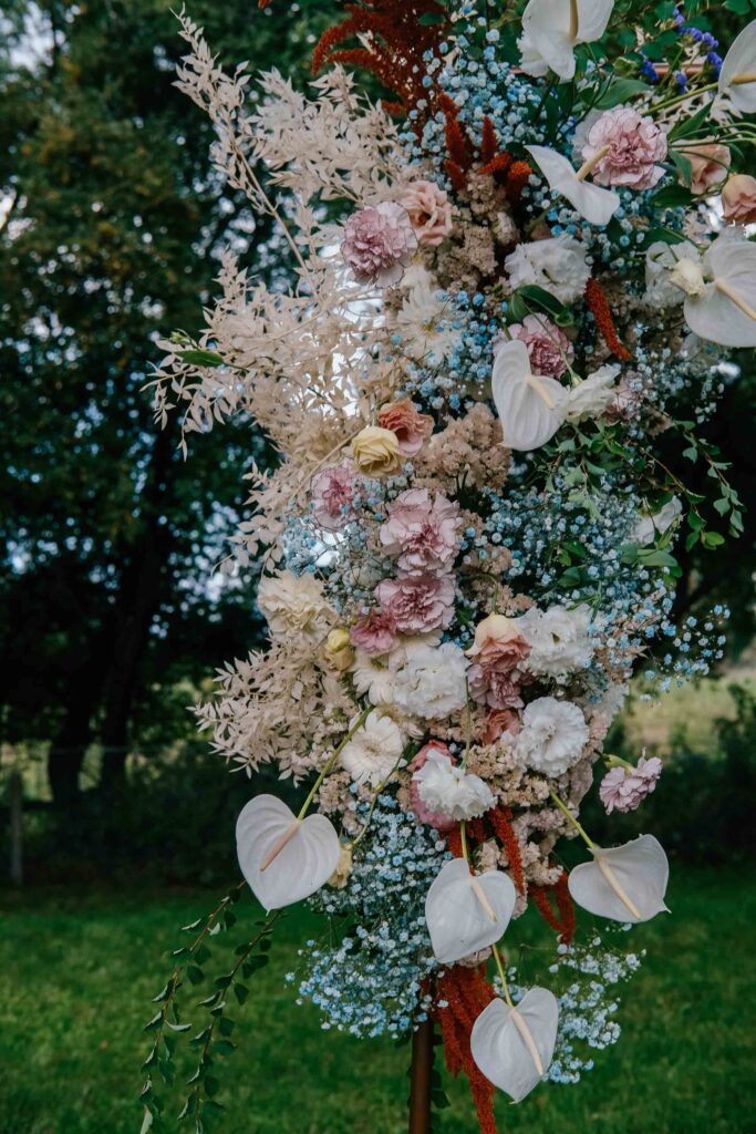 To był przepiękny leni ślub w Siedlisku Do Góry Kołami na Żuławach. Lekkie i zwiewne delikatne kompozycje pełne kwiatów. Ceremonia ślubna wśród jabłoni i kwiatów.